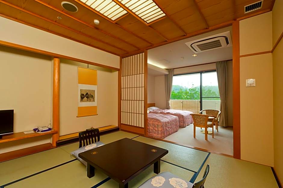 Guests will have a special experience as the quadruple room provides a private open-air bath. Providing free toiletries, this quadruple room includes a private bathroom with a bath, a shower and a hairdryer. This quadruple room is air-conditioned and features a seating area with a flat-screen TV, a safe deposit box, an electric kettle and a carpeted floor. The unit offers 2 beds and 2 futons.